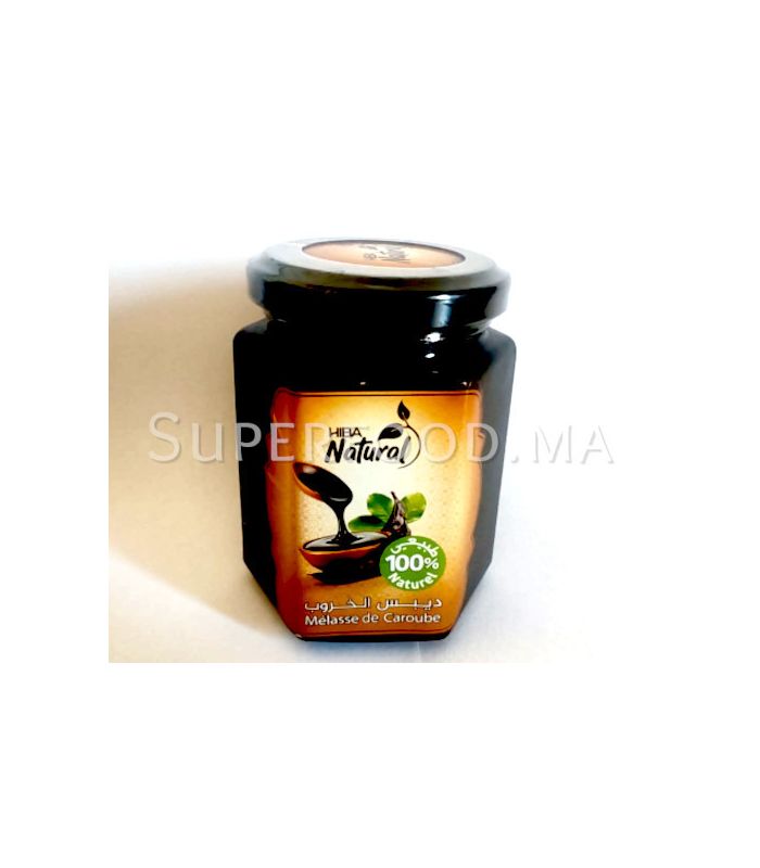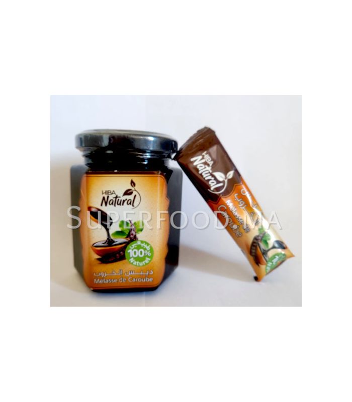 La mélasse de caroube Hiba Natural est un sirop épais et foncé extrait naturellement des gousses de caroubier. Riche en minéraux et sans additifs, elle apporte une touche sucrée et parfumée à vos préparations.
