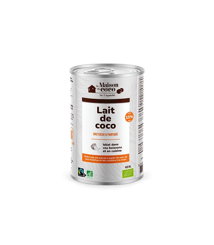 Lait de coco onctueux à 15% de matière grasse, idéal pour cuisiner, pâtisser ou préparer des boissons exotiques.