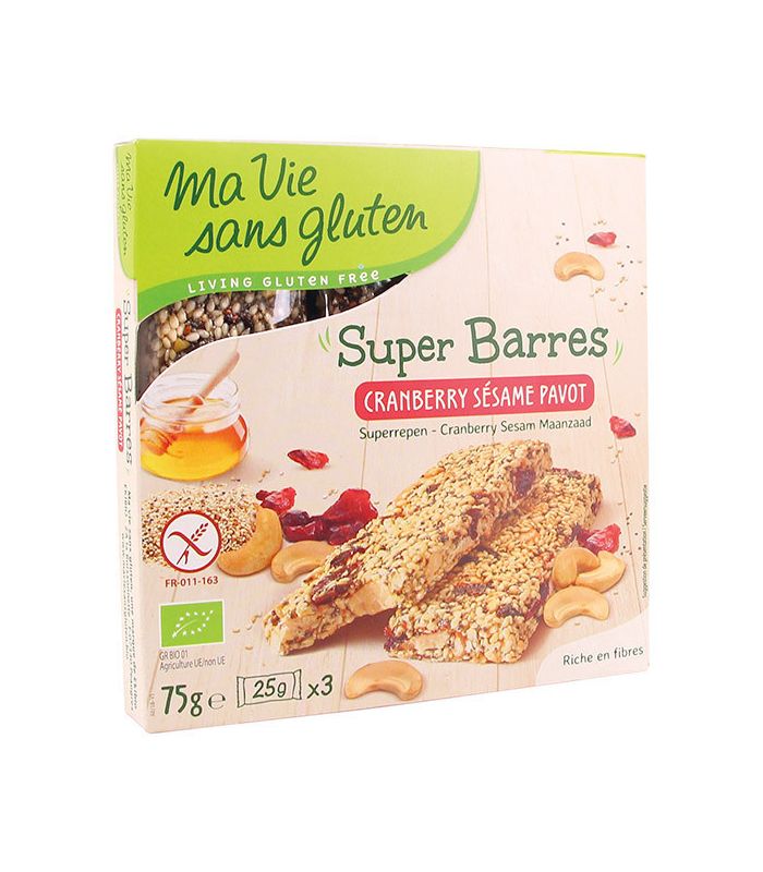 MA VIE SANS GLUTEN SUPER BARRES SESAME CRANBERRIES PAVOT BIO 75G