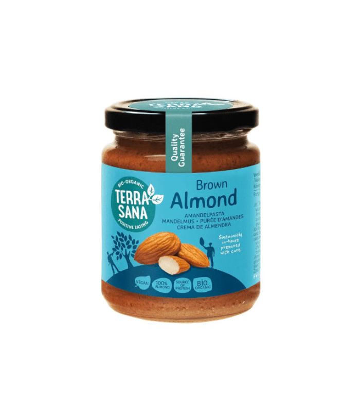 La purée d’amande complète Terrasana est élaborée à partir d’amandes bio grillées et moulues. Sa texture onctueuse et son goût naturel en font un produit nutritif et gourmand.