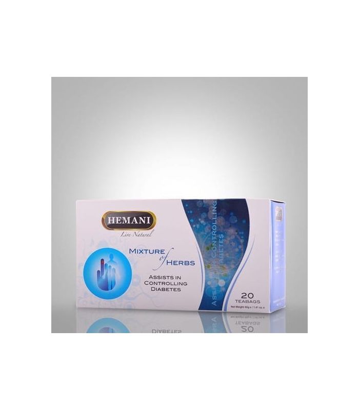 La tisane Hemani pour réguler le diabète: Un mélange d'herbes spécialement sélectionné pour aider à réguler la glycémie. Camomille, fenugrec, sauge, feuilles d'olivier, cannelle, aloe vera.