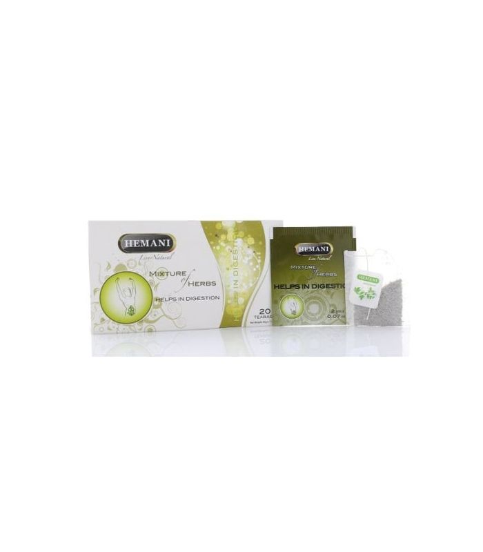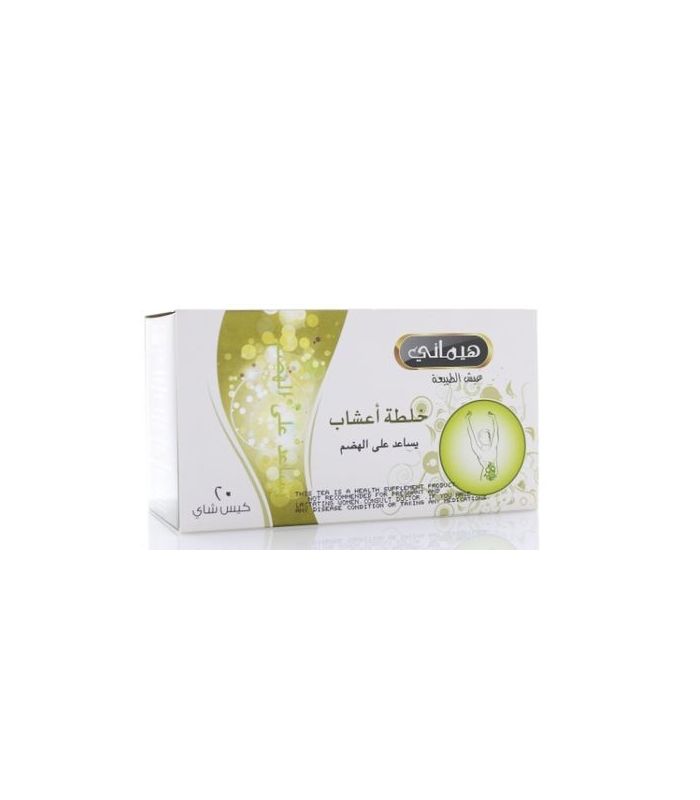 La tisane Hemani qui aide à la digestion: Une combinaison d'herbes aux propriétés digestives qui facilitent la digestion. Cumin, menthe, gingembre, anis, camomille, thym, thé vert.