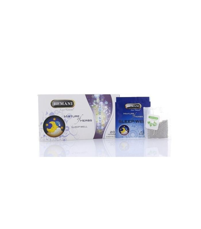 La tisane Hemani pour avoir un bon sommeil: Un mélange d'herbes pour aider à mieux dormir. Mélisse, lavande, valériane, camomille, menthe, le gratte cul, thé vert.